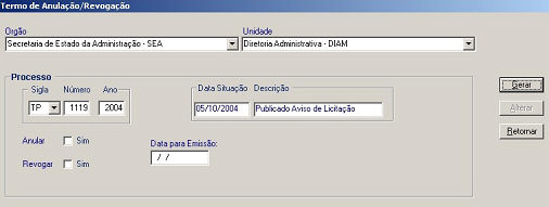 Gerar Termo de Anulação/Revogação