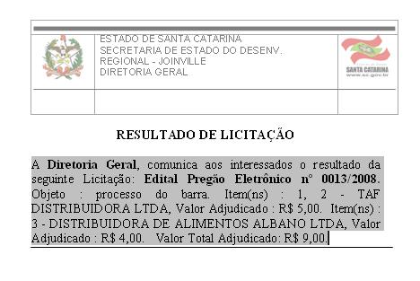 O Resultado de Licitação será gerado no editor de texto Word, preenchido automaticamente com os dados